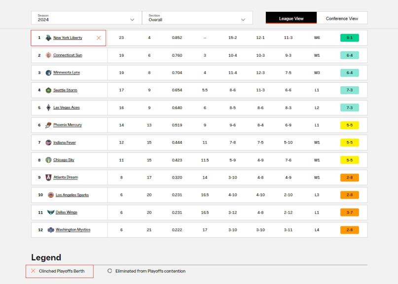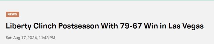 08月18日讯 WNBA常规赛,纽约自由人以79-67击败拉斯维加斯王牌,连续第二场战胜卫冕冠军。最近10场比赛,自由人拿下9胜1负的傲人战绩。在获得这场比赛胜利之后,自由人官方也发文表示球队已经锁定了本赛季季后赛资格(常规赛40场,联盟前8获季后赛资格),成为首个获得季后赛席位的球队。自由人本赛季至今的战绩是23胜4负,这也是她们队史开季前27场比赛的最佳战绩。